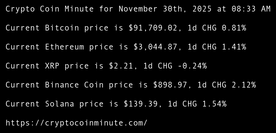 Crypto Coin Minute for November 30th, 2025 at 08:33 AM Pacific Time.