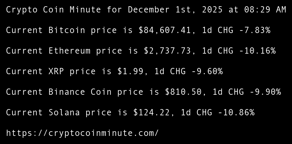 Crypto Coin Minute for December 1st, 2025 at 08:29 AM Pacific Time.