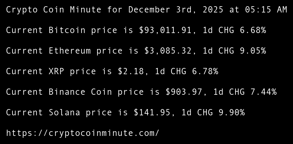 Crypto Coin Minute for December 3rd, 2025 at 05:15 AM Pacific Time.
