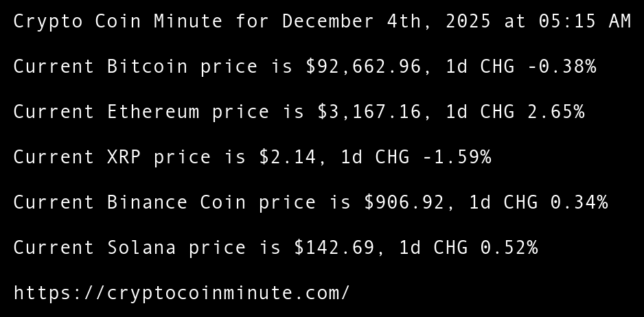 Crypto Coin Minute for December 4th, 2025 at 05:15 AM Pacific Time.