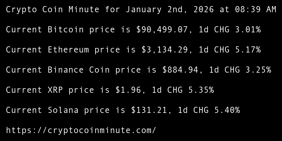 Crypto Coin Minute for January 2nd, 2026 at 08:39 AM Pacific Time.