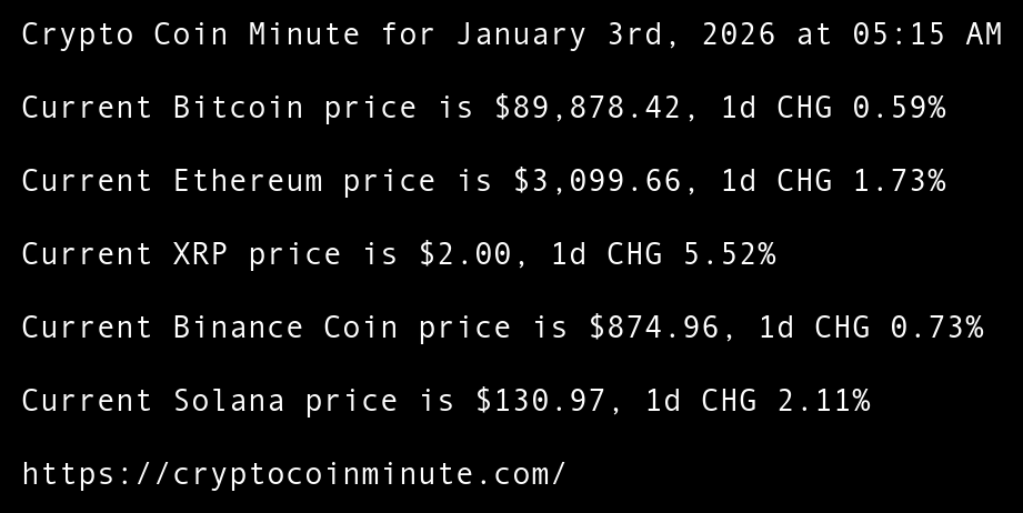 Crypto Coin Minute for January 3rd, 2026 at 05:15 AM Pacific Time.