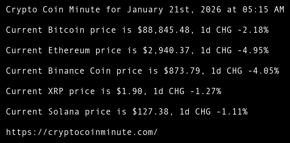 Crypto Coin Minute for January 21st, 2026 at 05:15 AM Pacific Time.