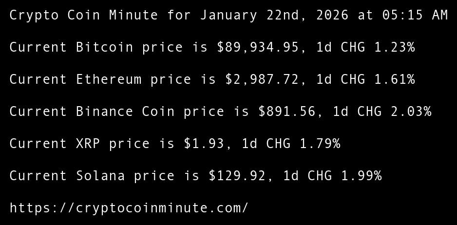 Crypto Coin Minute for January 22nd, 2026 at 05:15 AM Pacific Time.