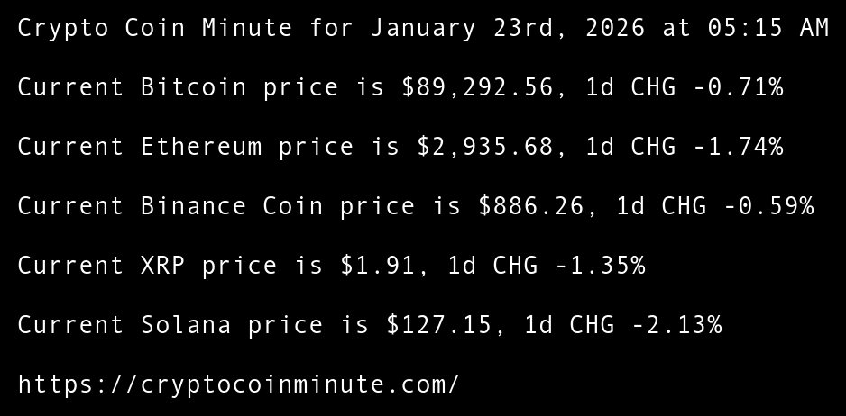 Crypto Coin Minute for January 23rd, 2026 at 05:15 AM Pacific Time.