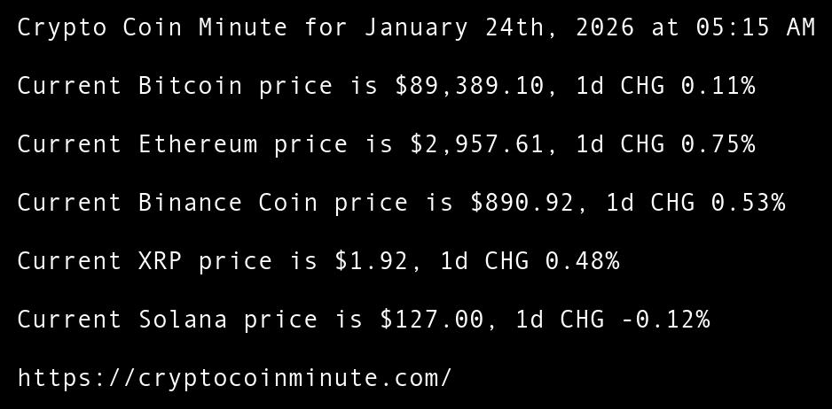 Crypto Coin Minute for January 24th, 2026 at 05:15 AM Pacific Time.