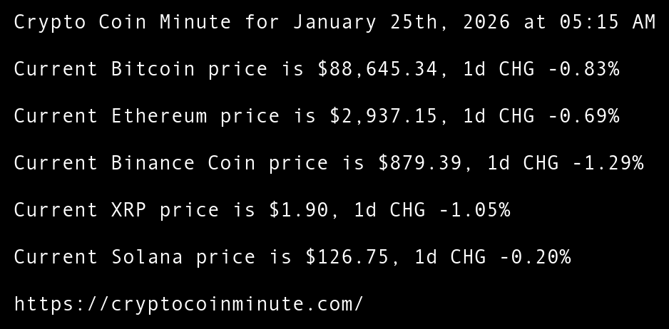 Crypto Coin Minute for January 25th, 2026 at 05:15 AM Pacific Time.