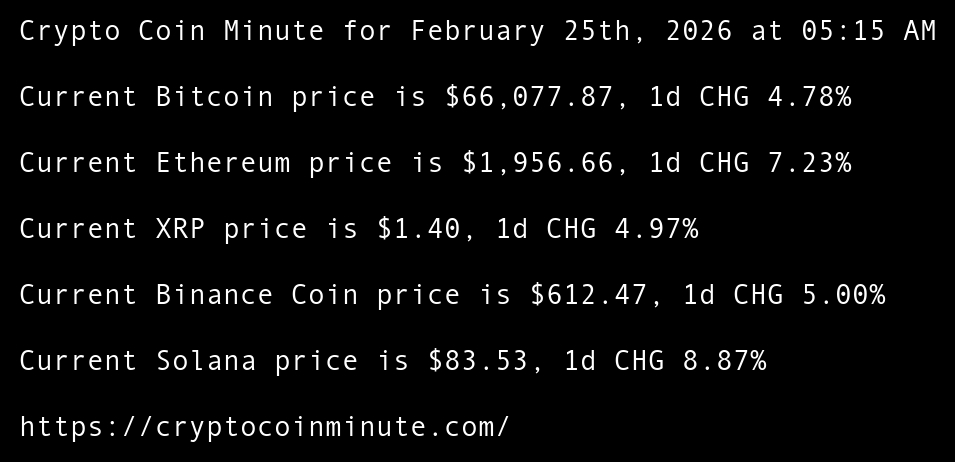 Crypto Coin Minute for February 25th, 2026 at 05:15 AM Pacific Time.
