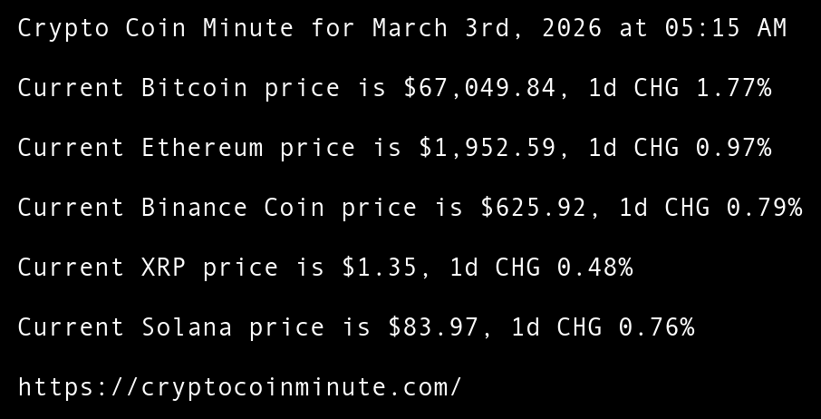 Crypto Coin Minute for March 3rd, 2026 at 05:15 AM Pacific Time.