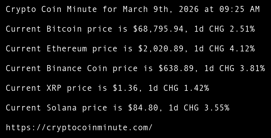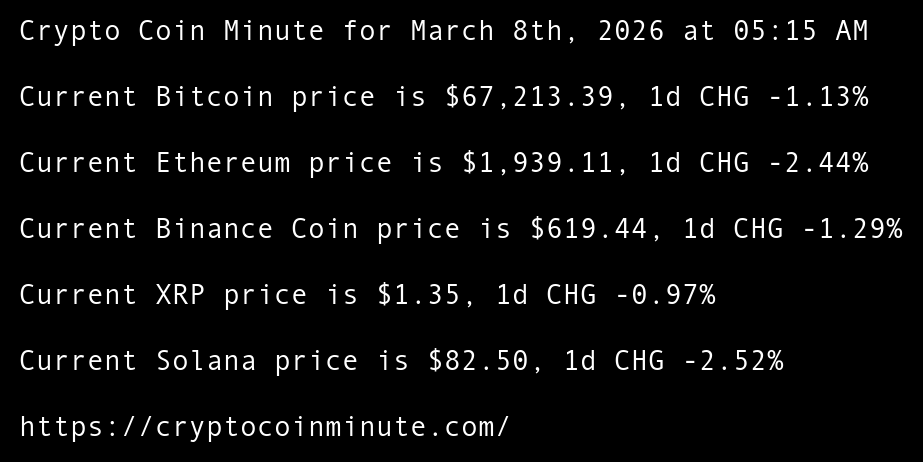 Crypto Coin Minute for March 8th, 2026 at 05:15 AM Pacific Time.