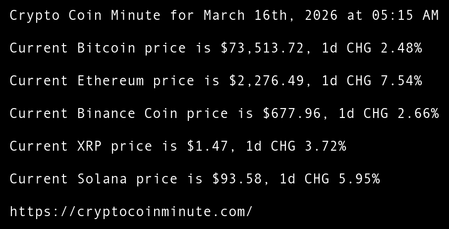 Crypto Coin Minute for February 13th, 2026 at 05:15 AM Pacific Time.