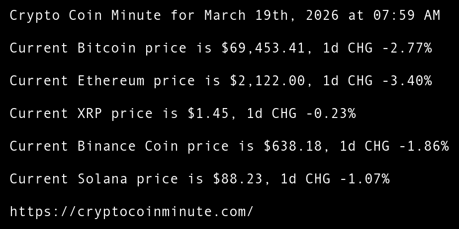 Crypto Coin Minute for March 19th, 2026 at 07:59 AM Pacific Time.