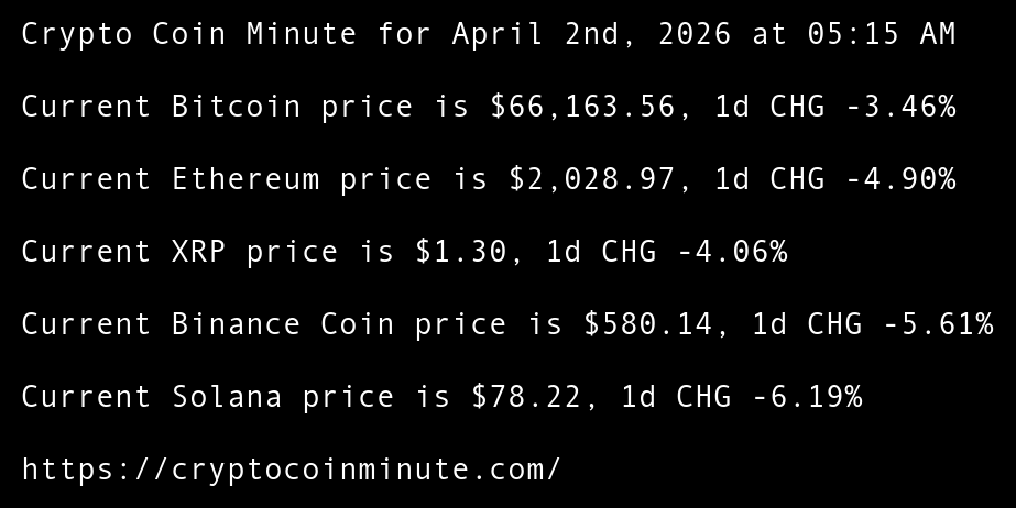 Crypto Coin Minute for April 2nd, 2026 at 05:15 AM Pacific Time.
