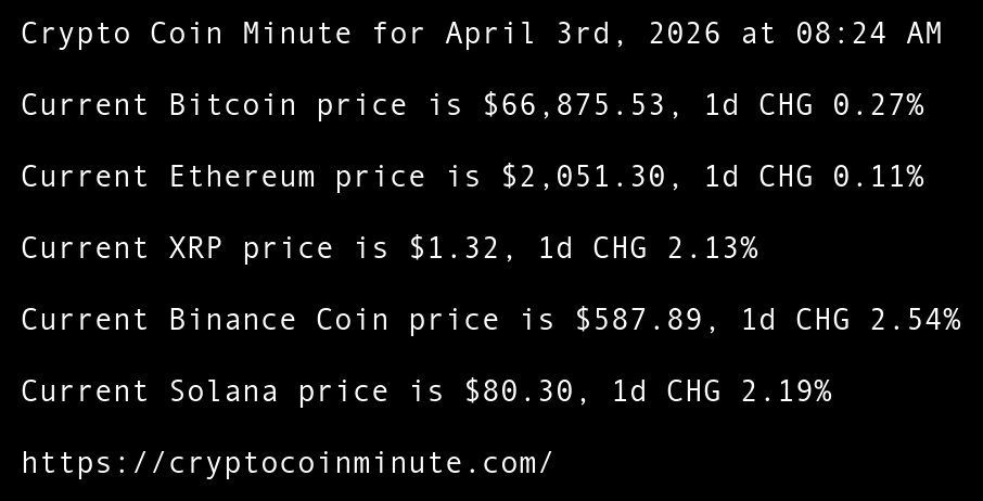 Crypto Coin Minute for April 3rd, 2026 at 08:24 AM Pacific Time.
