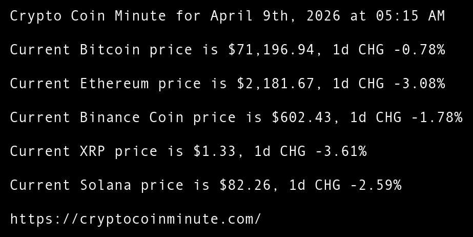 Crypto Coin Minute for April 9th, 2026 at 05:15 AM Pacific Time.