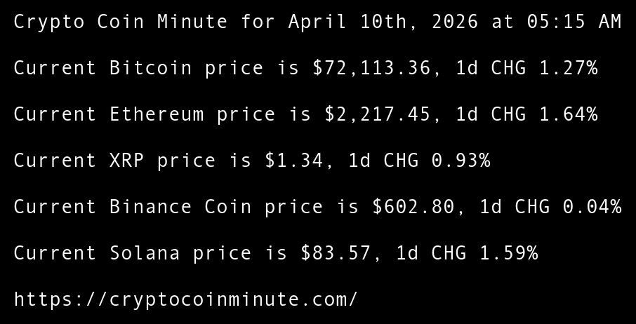 Crypto Coin Minute for April 10th, 2026 at 05:15 AM Pacific Time.