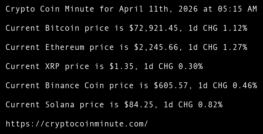 Crypto Coin Minute for April 11th, 2026 at 05:15 AM Pacific Time.