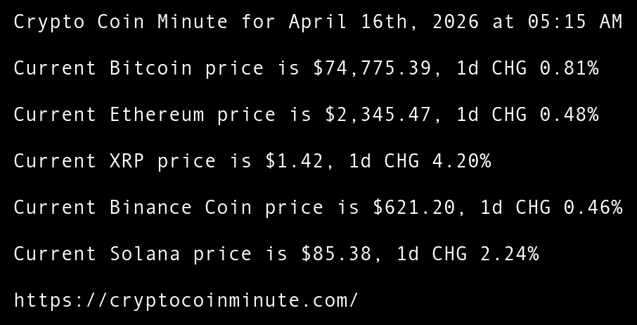 Crypto Coin Minute for April 16th, 2026 at 05:15 AM Pacific Time.
