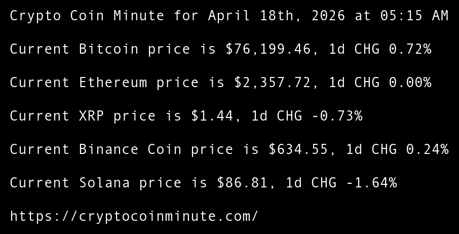 Crypto Coin Minute for April 17th, 2026 at 05:15 AM Pacific Time.