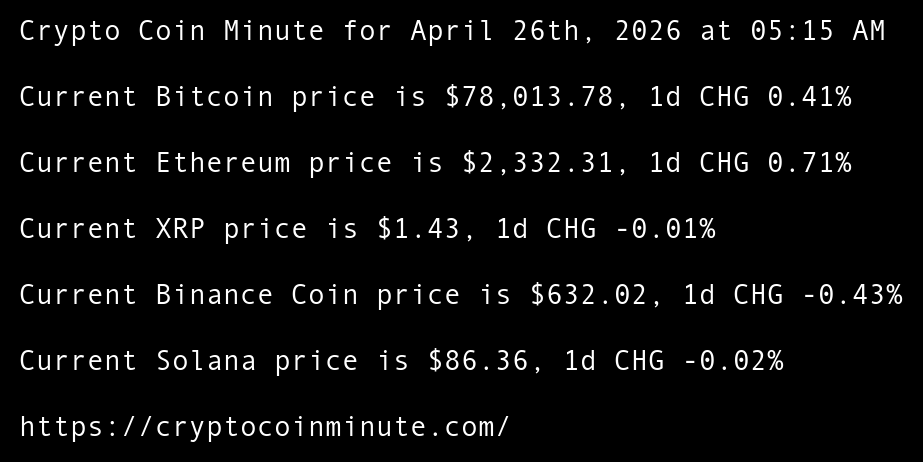 Crypto Coin Minute for April 25th, 2026 at 05:15 AM Pacific Time.