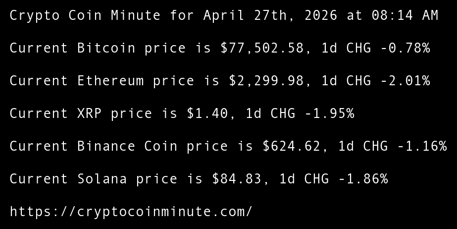 Crypto Coin Minute for April 26th, 2026 at 05:15 AM Pacific Time.