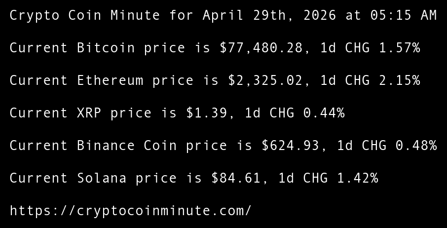 Crypto Coin Minute for April 28th, 2026 at 05:15 AM Pacific Time.