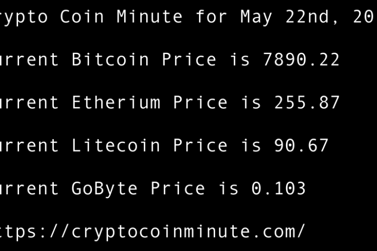 Current Bitcoin Price is 7890.22 Current Etherium Price is 255.87 Current Litecoin Price is 90.67 Current GoByte Price is 0.103