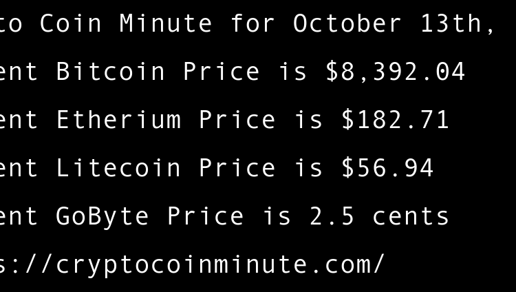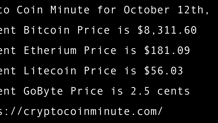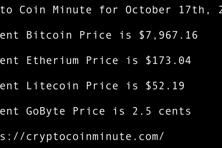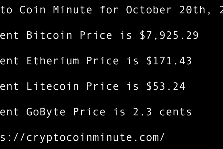 Current Bitcoin Price is $7,925.29 Current Etherium Price is $171.43 Current Litecoin Price is $53.24 Current GoByte Price is 2.3 cents Binance.US USD deposits eligible for FDIC insurance coverage Telegrams token sale hearing postponed to 2020 Bitcoin theft carried out for 3 years via malware-infected …