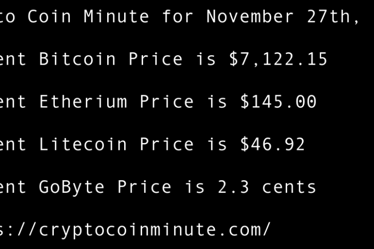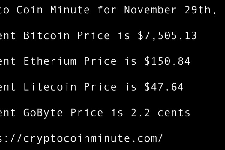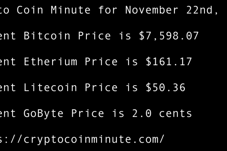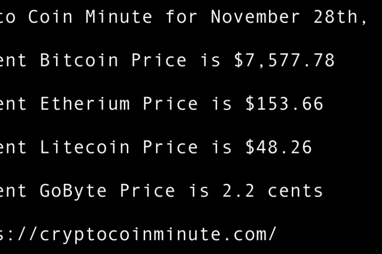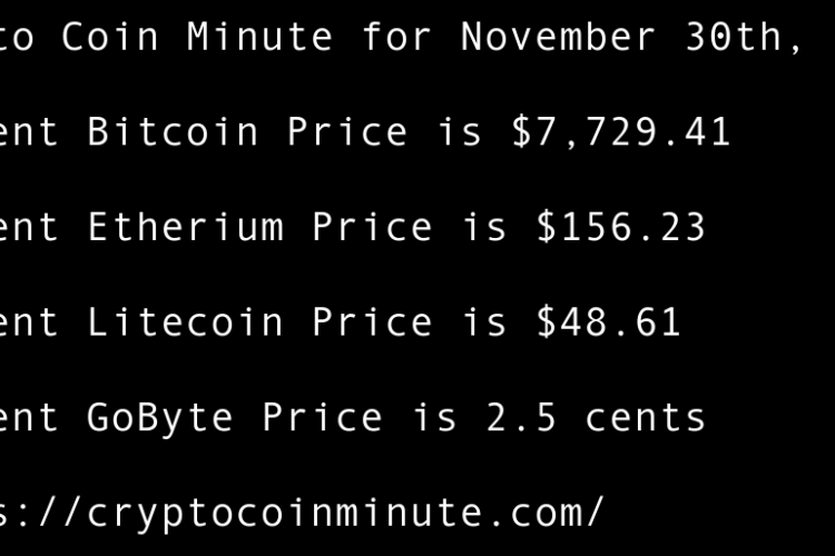 Current Bitcoin Price is $7,729.41 Current Etherium Price is $156.23 Current Litecoin Price is $48.61 Current GoByte Price is 2.5 cents Russia’s Central Bank supports prohibition of Bitcoin payments Cisco Patent Would Secure 5G Networks With a Blockchain Coinbase patent to monitor account compliance gets …