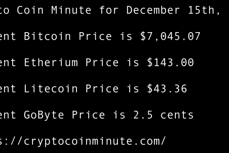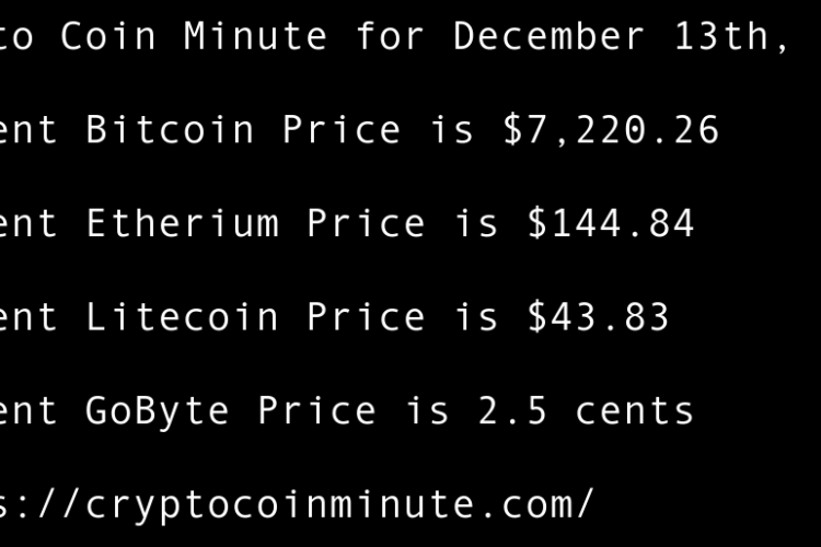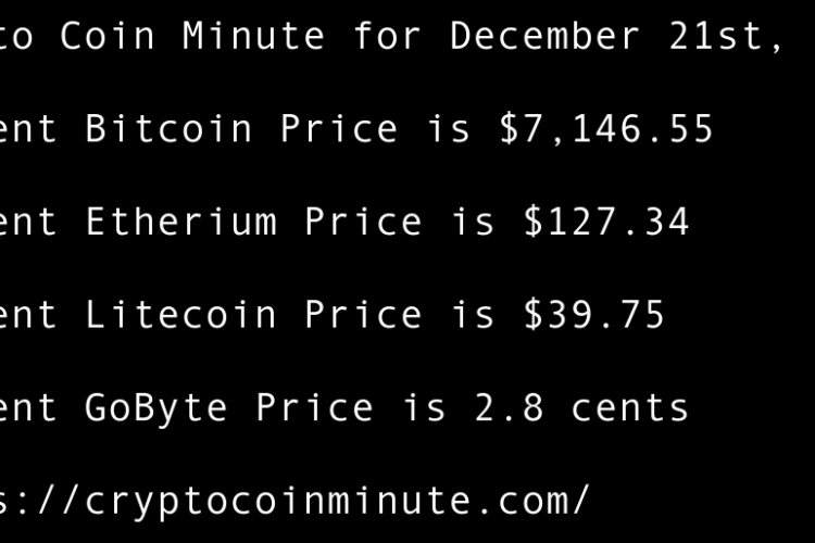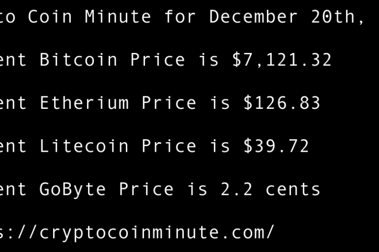 Current Bitcoin Price is $7,146.55 Current Etherium Price is $127.34 Current Litecoin Price is $39.75 Current GoByte Price is 2.8 cents Alibaba Patents Would Secure, Accelerate Its Consortium Blockchain US Lawmakers Ask IRS to Clarify Crypto Tax Rules Around Airdrops, Forks in New Letter SEC …