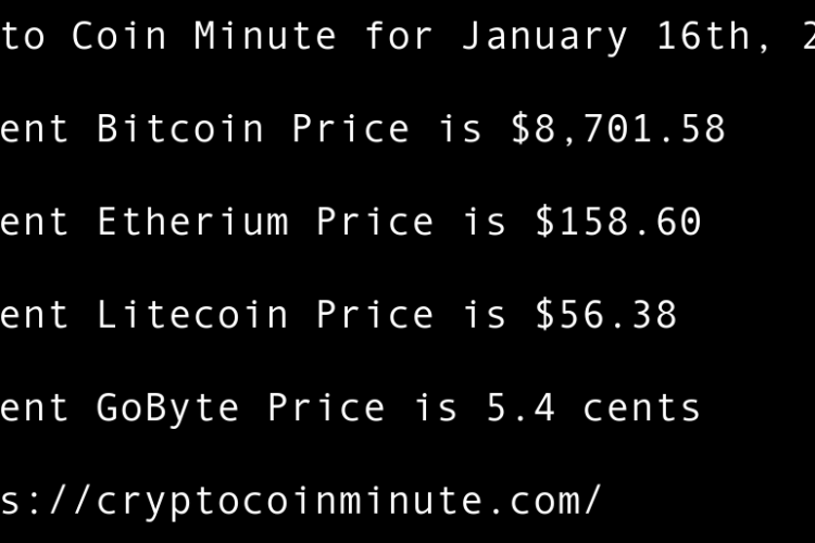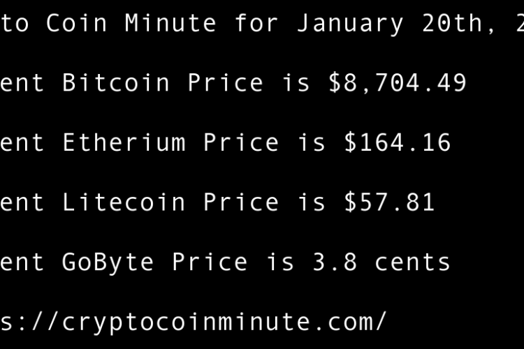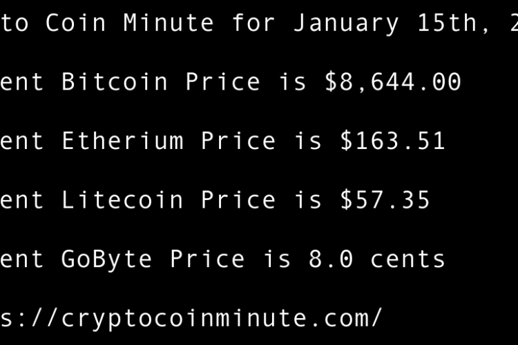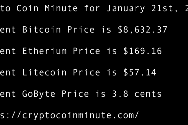Current Bitcoin Price is $8,632.37 Current Etherium Price is $169.16 Current Litecoin Price is $57.14 Current GoByte Price is 3.8 cents CME Open Interest for Bitcoin Futures Up 100% Since Start of 2020 South Korea Considers 20% Crypto Tax Blockstream Co-Founder Joins Bitcoin-Only Startup River …