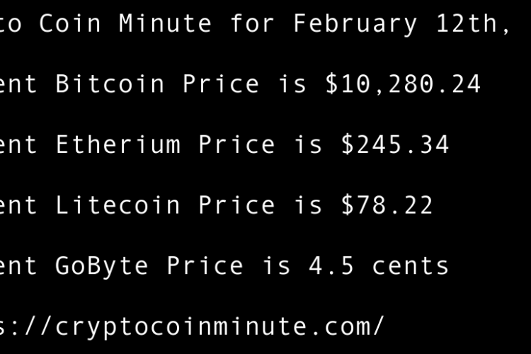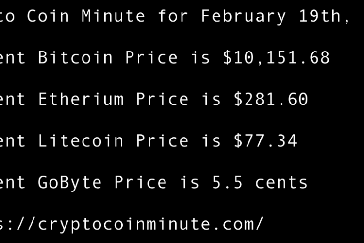 Current Bitcoin Price is $10,151.68 Current Etherium Price is $281.60 Current Litecoin Price is $77.34 Current GoByte Price is 5.5 cents Michael Bloomberg Pushes For Crypto Regulation The IRS Is Inviting Crypto Firms to a Summit in DC Next Month The U.S. governments approach to …