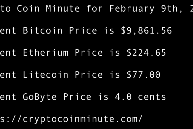 Current Bitcoin Price is $9,861.56 Current Etherium Price is $224.65 Current Litecoin Price is $77.00 Current GoByte Price is 4.0 cents Binance DEX to have $100,000 listing fee to reduce spam/scam projects United States’ hesitance over blockchain, crypto-regulations could see it fall behind Tesla Rally …