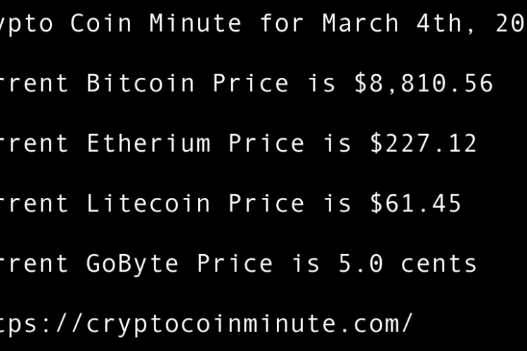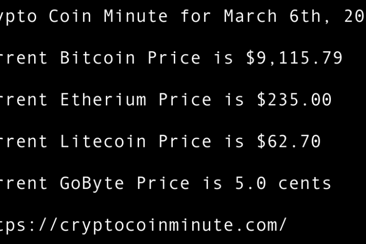 Current Bitcoin Price is $9,067.58 Current Etherium Price is $246.00 Current Litecoin Price is $62.97 Current GoByte Price is 5.0 cents Increasing Bitcoin block size will affect those validating with constrained bandwidth IRS Crypto Summit Was About the Exchange of Ideas, Not Tax Guidance Chinese …