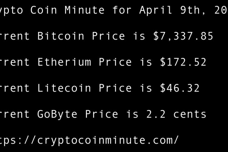 Current Bitcoin Price is $7,337.85 Current Etherium Price is $172.52 Current Litecoin Price is $46.32 Current GoByte Price is 2.2 cents Bitcoin Cash Halving Met with 11 percent Price Surge Bitcoin-Backed Token t.z.B.T.C. Will be Issued on Tezos Blockchain Will it be Hard for Coin …