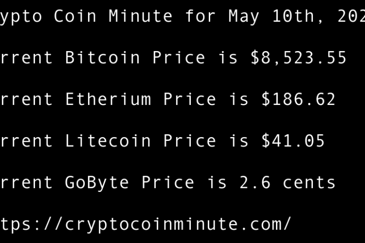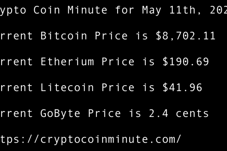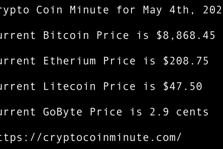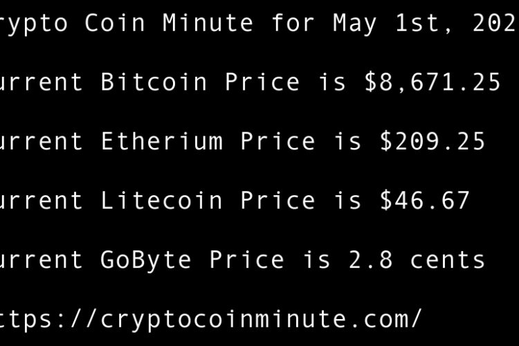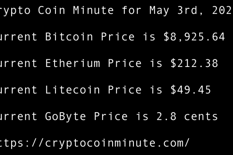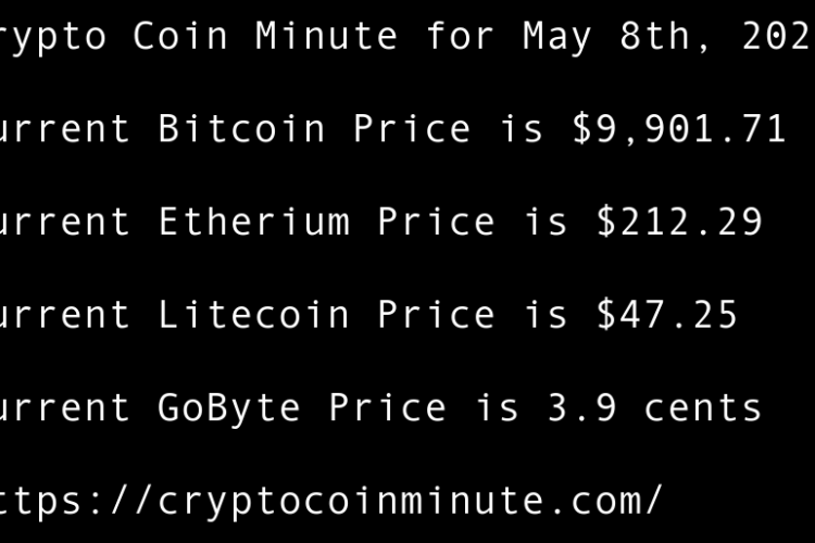 Current Bitcoin Price is $8,702.11 Current Etherium Price is $190.69 Current Litecoin Price is $41.96 Current GoByte Price is 2.4 cents Bitcoin Price Bounces at Key Trendline Support 1 Day Before B.T.C. Halving BlockDown 3D virtual conference returns in June following smash-hit debut Grayscale Assets …