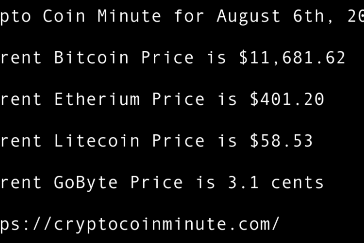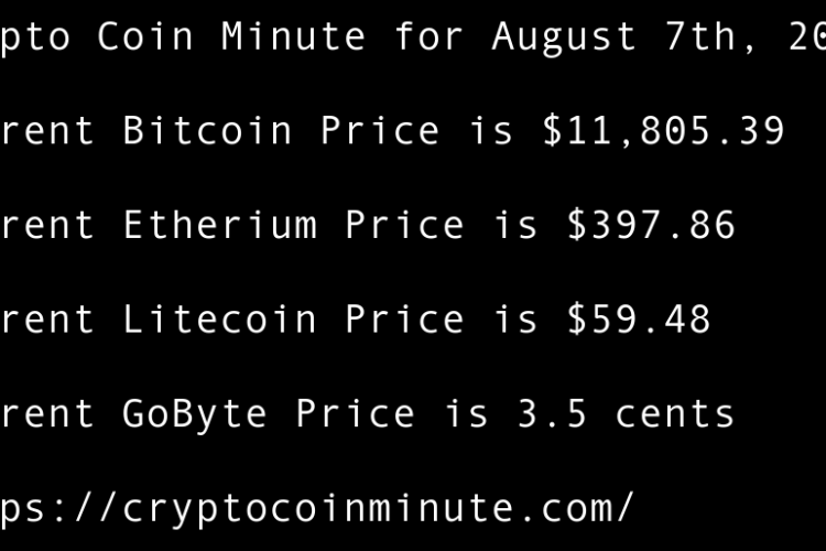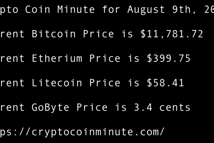 Current Bitcoin Price is $11,781.72 Current Etherium Price is $399.75 Current Litecoin Price is $58.41 Current GoByte Price is 3.4 cents North America may be emerging as the hodling hub of the world Cryptocurrency Cards are An Unnecessary Solution That Should Be Stopped Coinbase delays …