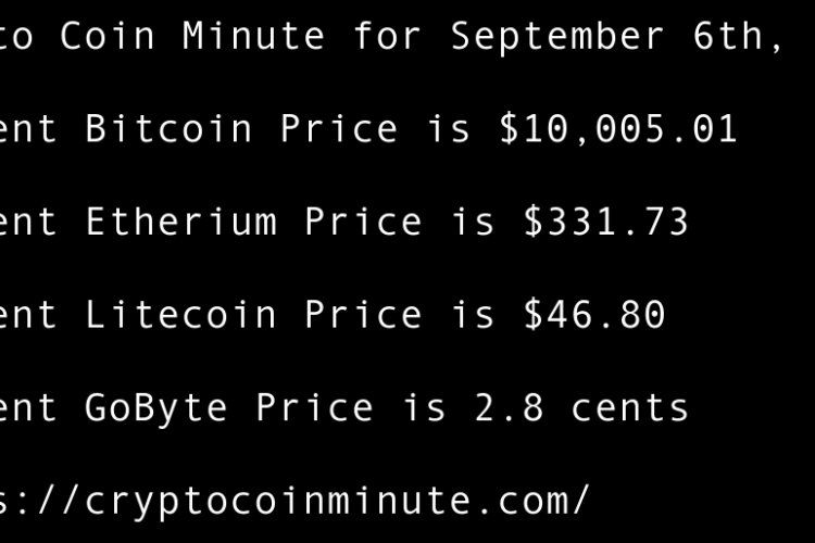 Current Bitcoin Price is $10,005.01 Current Etherium Price is $331.73 Current Litecoin Price is $46.80 Current GoByte Price is 2.8 cents Ethereums rising transaction fees may be a deal-breaker for day traders As Bitcoin continues falling, Earnbet launches new Token Mining!