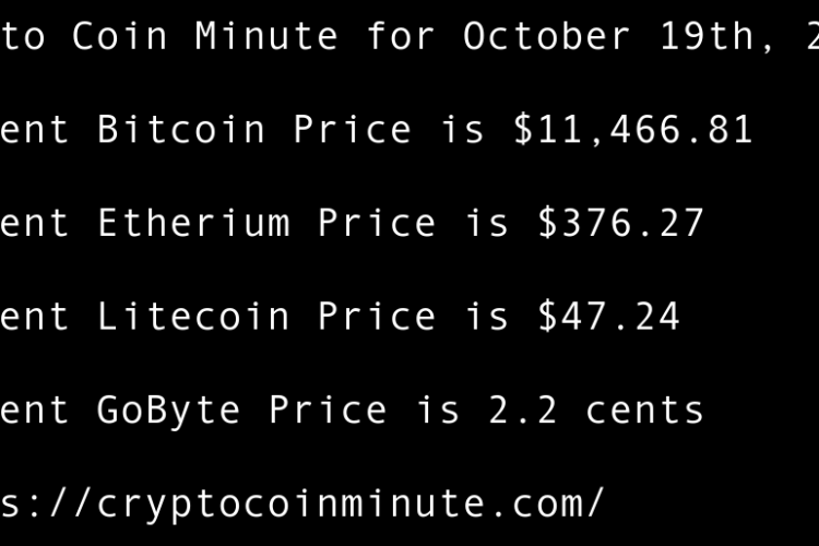 Current Bitcoin Price is $11,466.81 Current Etherium Price is $376.27 Current Litecoin Price is $47.24 Current GoByte Price is 2.2 cents The O.K. Ex Drama Exposes a Weakness in Crypto Market Infrastructure Pelosi Says Its Tuesday or Bust if White House Wants a Pre-Election Stimulus …