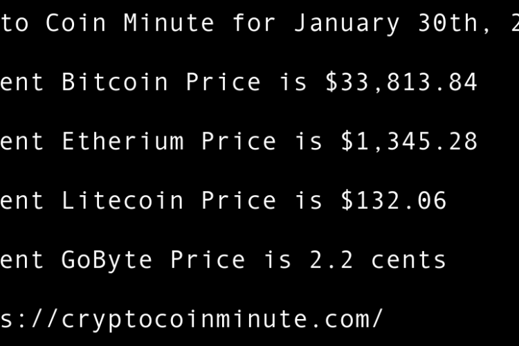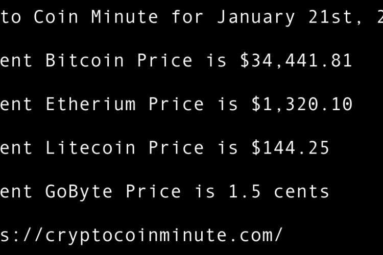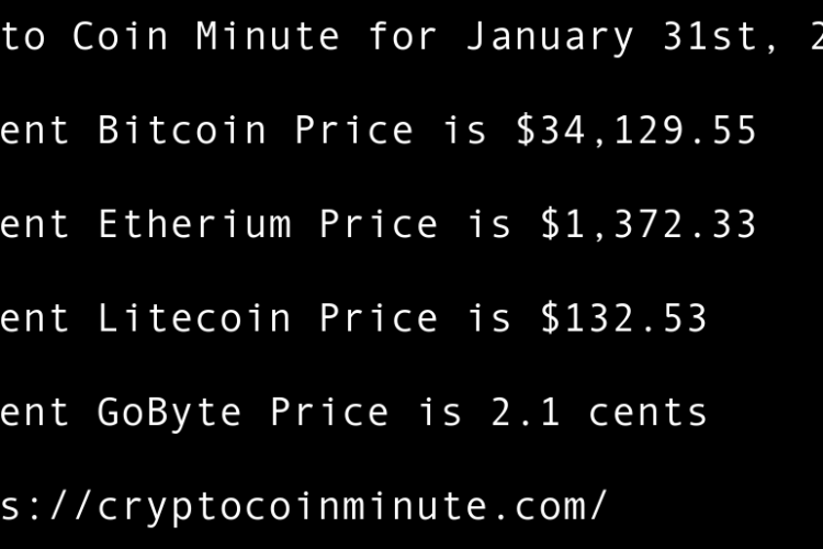 Current Bitcoin Price is $34,129.55 Current Etherium Price is $1,372.33 Current Litecoin Price is $132.53 Current GoByte Price is 2.1 cents Indias Proposed Crypto Ban Has Investors Nervous, May Feed Anti-Bitcoin Narrative Judge Rejects Virgil Griffiths Motion to Dismiss Charges of Aiding North Korea