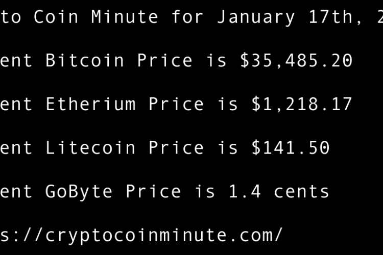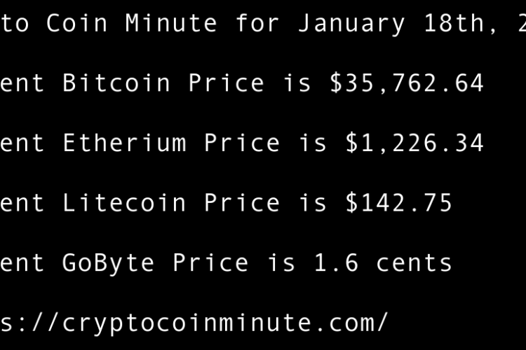 Current Bitcoin Price is $35,360.98 Current Etherium Price is $1,365.91 Current Litecoin Price is $151.23 Current GoByte Price is 1.4 cents Asia accounts for almost half of global crypto trading. Bitcoin and altcoins correct after Yellens illicit financing critique. Bitcoin node count hits new all-time …