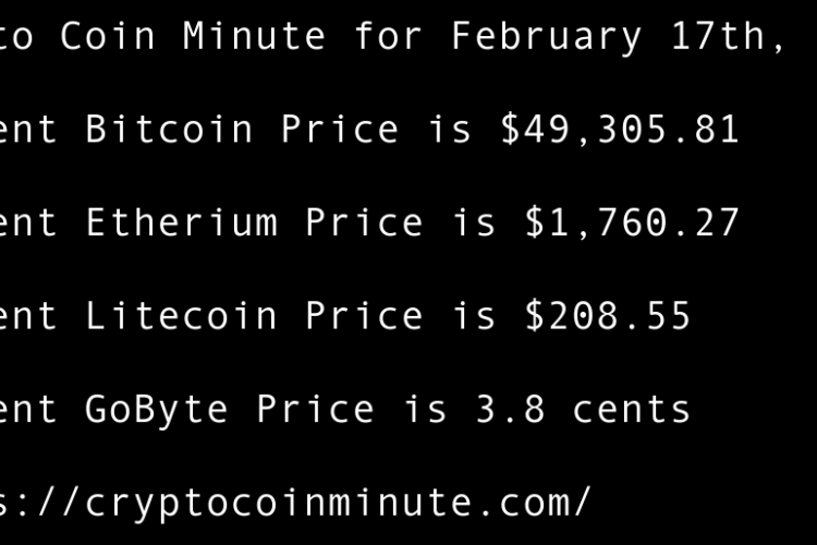 Current Bitcoin Price is $47,204.56 Current Etherium Price is $1,493.80 Current Litecoin Price is $176.12 Current GoByte Price is 4.5 cents JPMorgan report endorses 1% allocation to Bitcoin as a hedge A Prime X.B.T. trader explains how he turned 400 thousand dollars into 8.5 million …