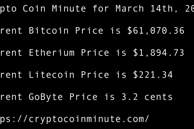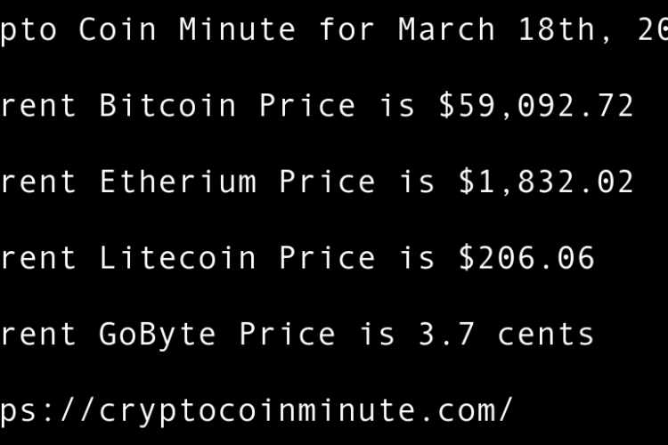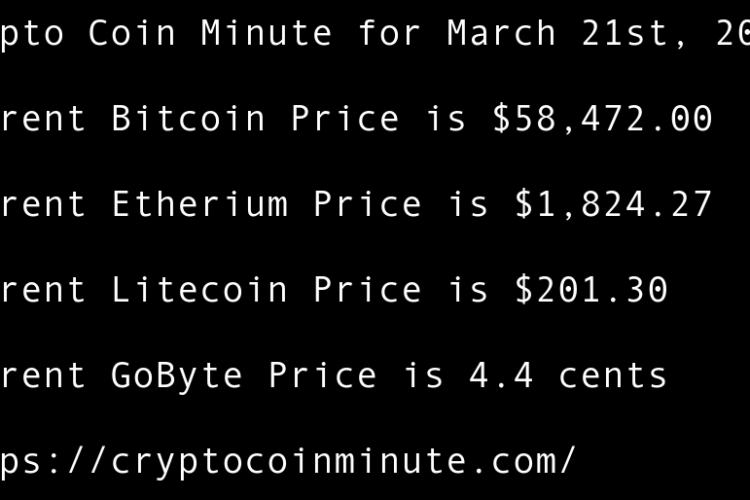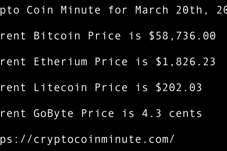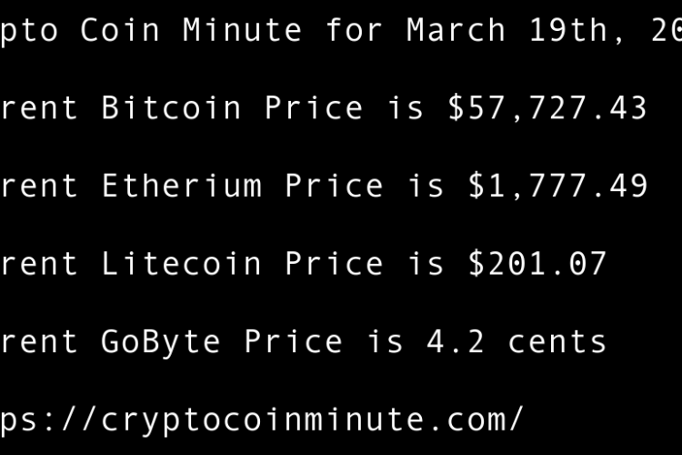 Current Bitcoin Price is $58,472.00 Current Etherium Price is $1,824.27 Current Litecoin Price is $201.30 Current GoByte Price is 4.4 cents Binance Smart Chain project TurtleDex pulls the rug on its users and steals $2.5 million First Trust Advisors and SkyBridge Capital apply for Bitcoin …
