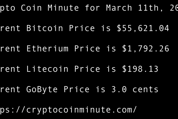 Current Bitcoin Price is $55,621.04 Current Etherium Price is $1,792.26 Current Litecoin Price is $198.13 Current GoByte Price is 3.0 cents An entrepreneur weighs in on how to definitely send DOGE to $1 Israeli asset manager doubles its $100M Bitcoin investment in just two months …