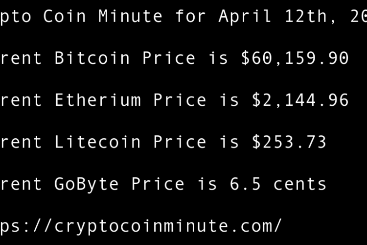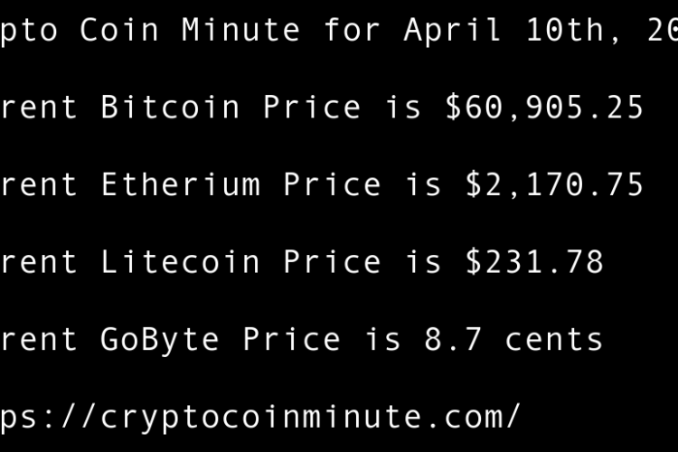 Current Bitcoin Price is $60,905.25 Current Etherium Price is $2,170.75 Current Litecoin Price is $231.78 Current GoByte Price is 8.7 cents App maker Meitu buys another 175 BTC, pushing Bitcoin closer to a breakout WAVES token surges to new all-time high following NFT announcement WWEs …