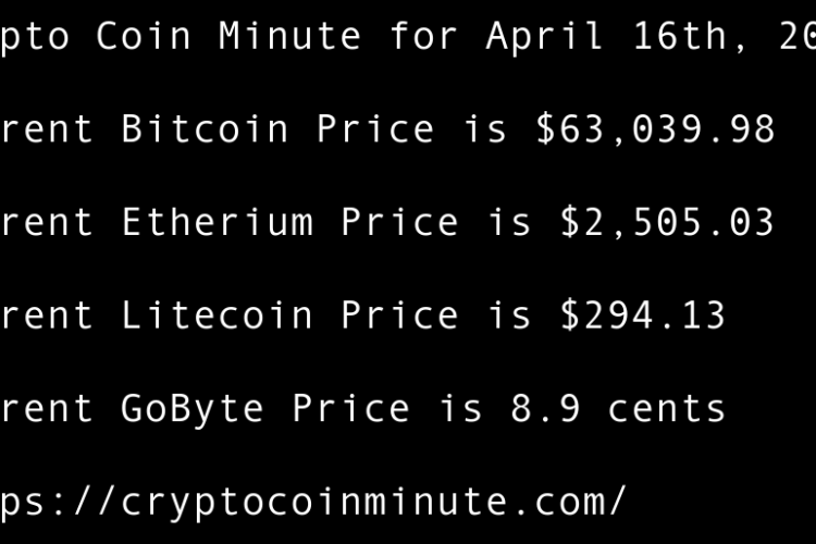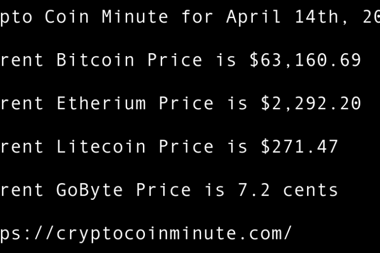 Current Bitcoin Price is $63,039.98 Current Etherium Price is $2,505.03 Current Litecoin Price is $294.13 Current GoByte Price is 8.9 cents Dogecoin and Maker soar as the altcoin market cap tops 1 Trillion dollars Jim Cramer cashes out half his ‘phoney money’ Bitcoin to pay …