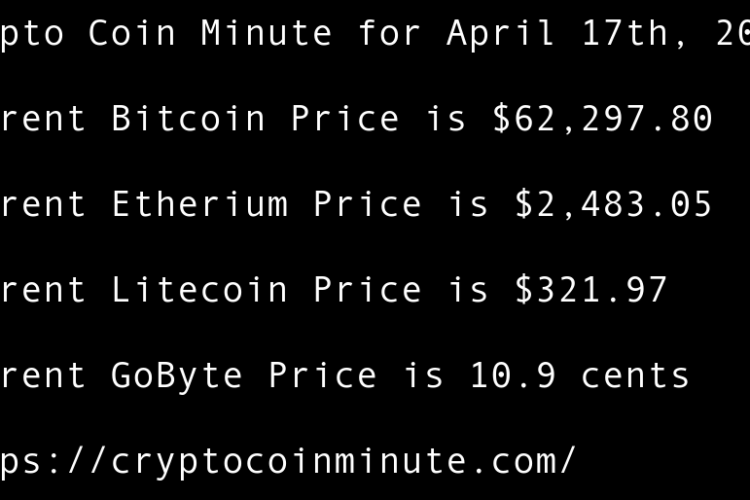 Current Bitcoin Price is $62,297.80 Current Etherium Price is $2,483.05 Current Litecoin Price is $321.97 Current GoByte Price is 10.9 cents Dogecoin pumps 200% to become 5th largest crypto, and no one knows why Former SEC Director who led Ripple action lands new role at …