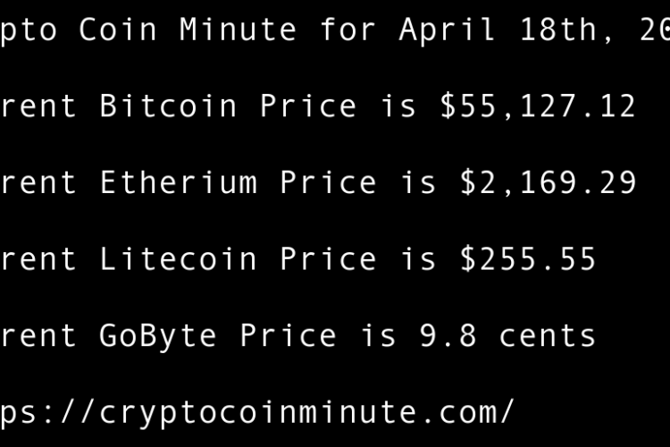 Current Bitcoin Price is $55,127.12 Current Etherium Price is $2,169.29 Current Litecoin Price is $255.55 Current GoByte Price is 9.8 cents Dogecoin continues to attract long-term hodlers Bitcoin dips under $60,000