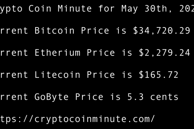 Current Bitcoin Price is $34,720.29 Current Etherium Price is $2,279.24 Current Litecoin Price is $165.72 Current GoByte Price is 5.3 cents Ethereums approach to scaling is not going to be enough. Analyst says reclaiming $37,500 is Bitcoins crucial line in the sand Early Ethereum designer …