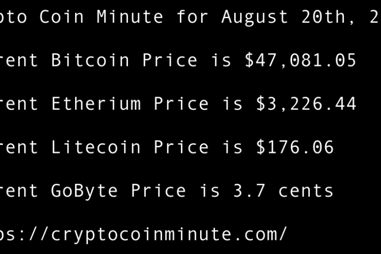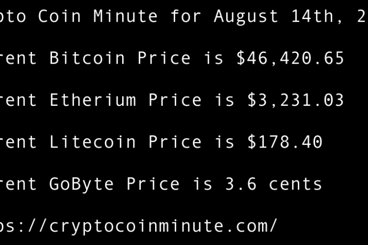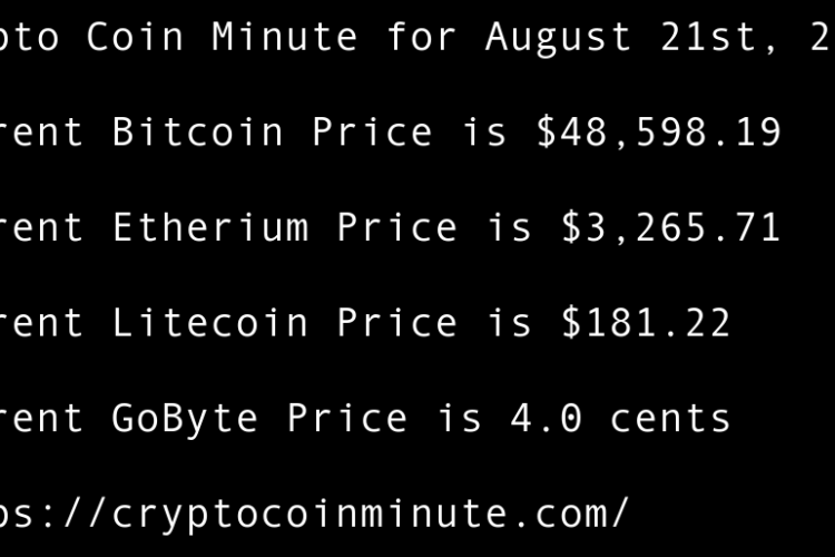 Current Bitcoin Price is $48,598.19 Current Etherium Price is $3,265.71 Current Litecoin Price is $181.22 Current GoByte Price is 4.0 cents Making crypto gambling accessible with CryptoCasinoClub Altcoins rally higher while Bitcoin bulls target $50,000 SEC chief slams highly centralized DeFi projects. Is regulation coming?